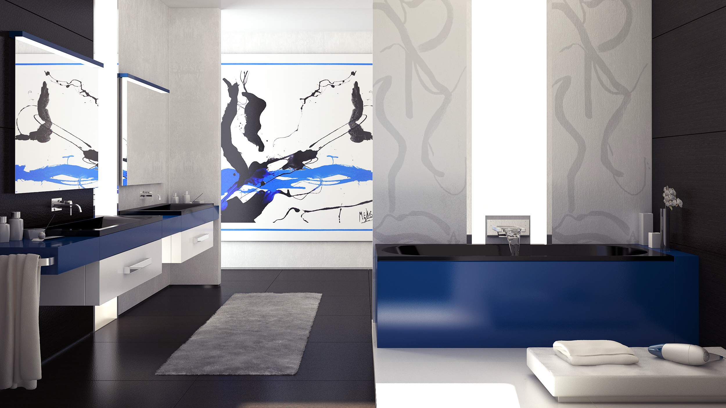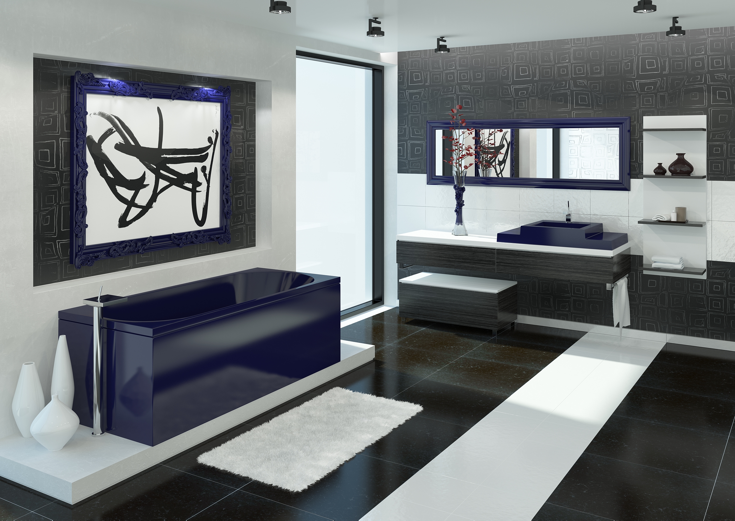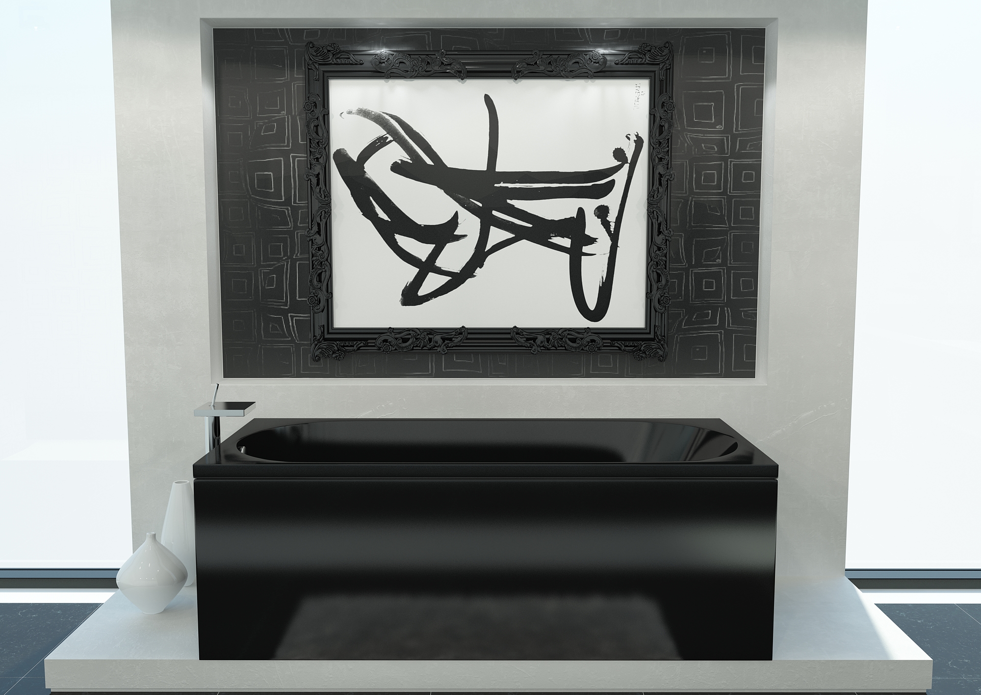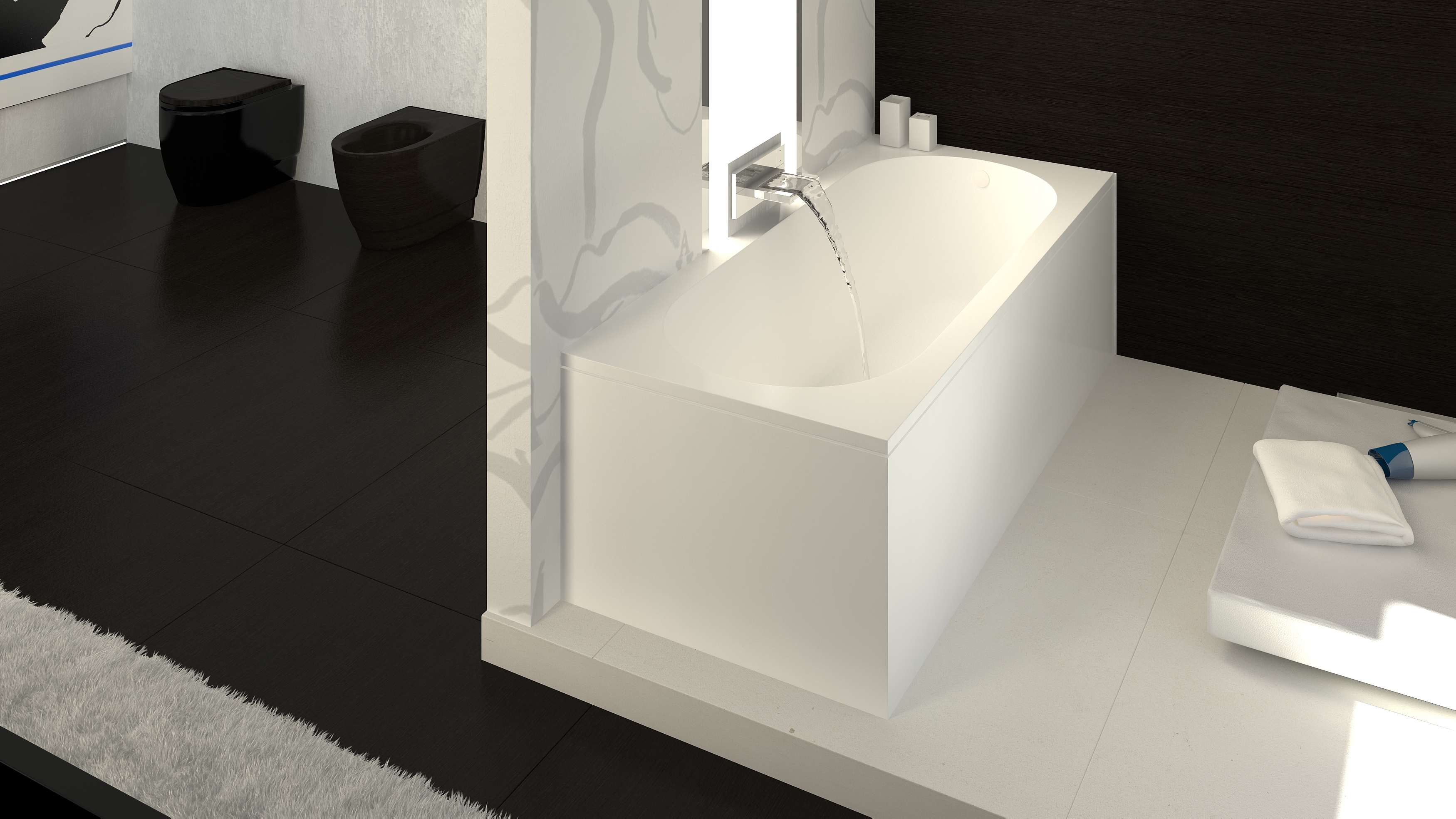 Встраиваемая цельнолитая мармориловая ванна VISPOOL в современном минималистичном дизайне.