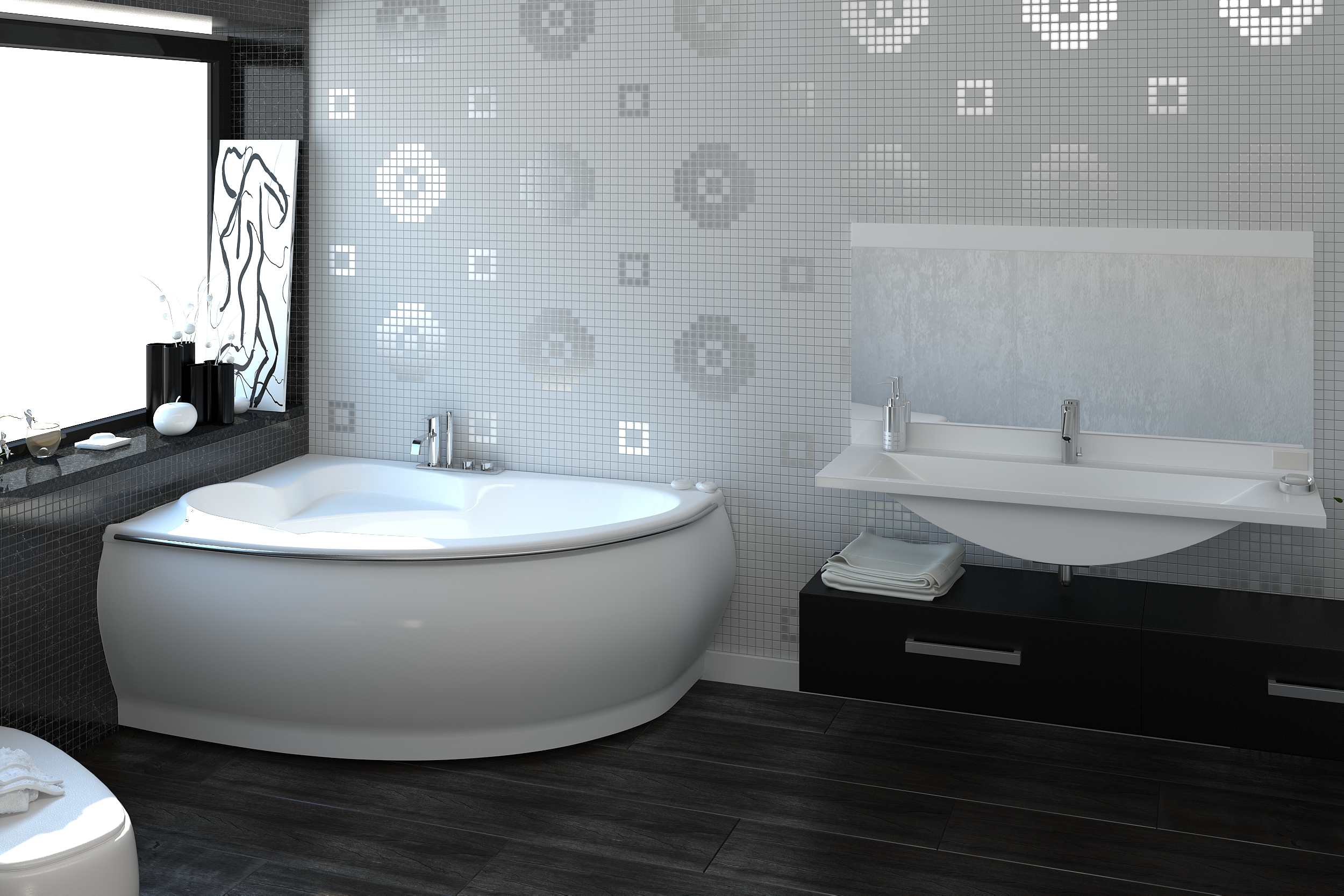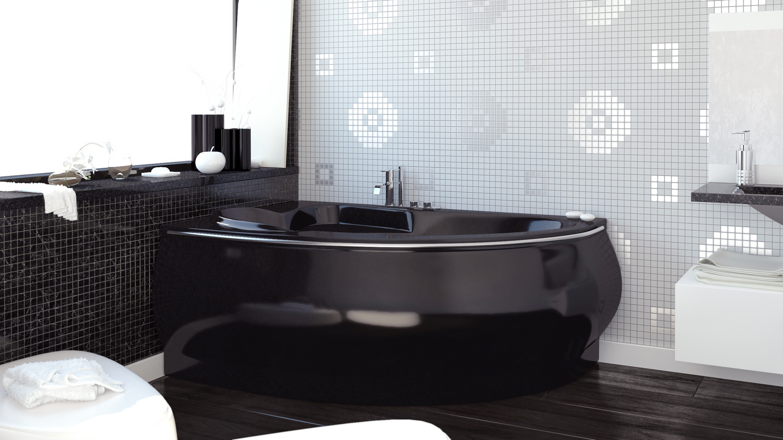 Угловая цельнолитая мармориловая ванна VISPOOL в современном минималистичном дизайне.