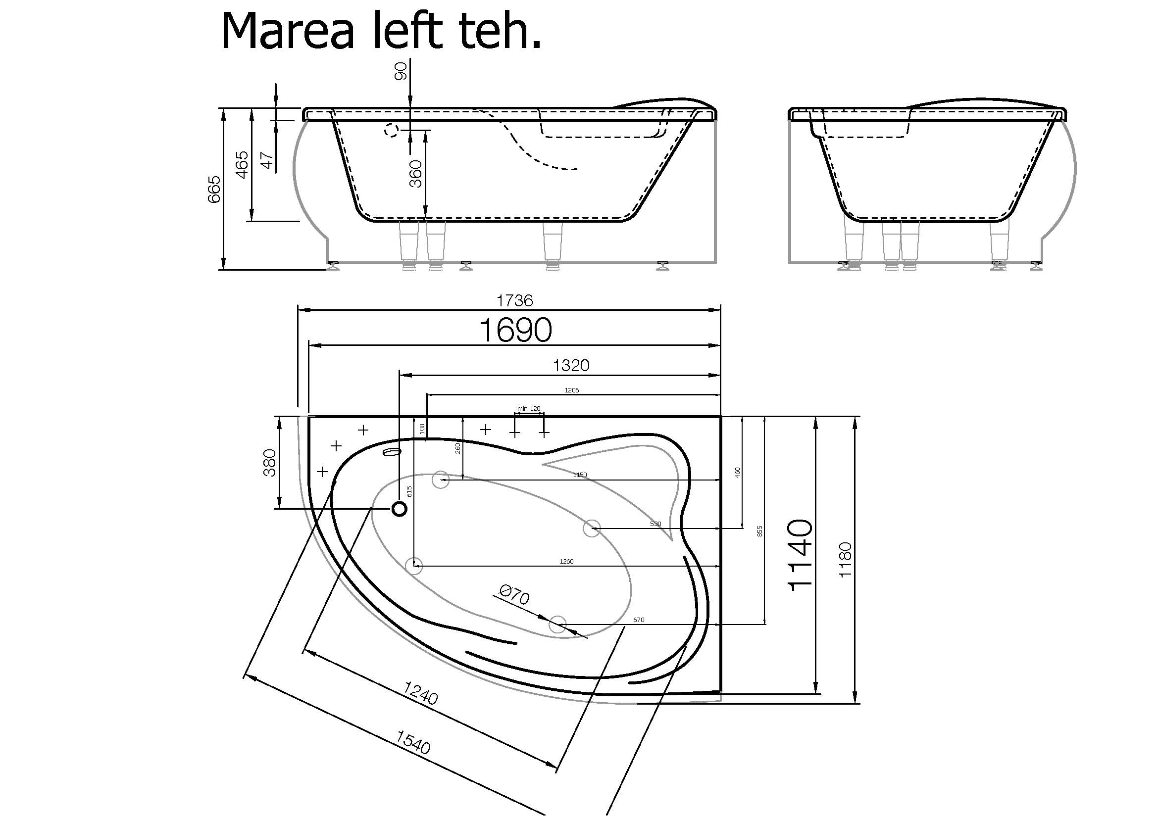 Размеры, (мм): длина - 1736, ширина - 1180, высота - 665;