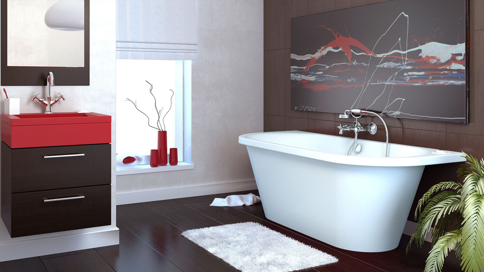 Пристенная цельнолитая мармориловая ванна VISPOOL в современном минималистичном дизайне.
