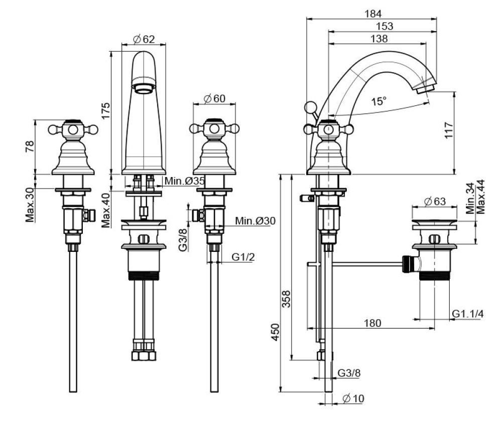 Комплектация: смеситель, жёсткая подводка, донный клапан;