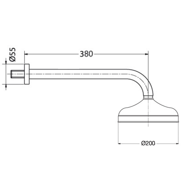 Комплектация: верхний тропический душ диаметром 200 мм с поворотным шарниром, настенный кронштейн длиной 380 мм, отражатель диаметром 55 мм;