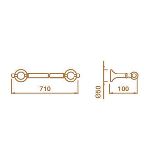 Размеры, (мм): длина общая - 716, длина держателя - 600, диаметр креплений на стену - 43, глубина - 94;