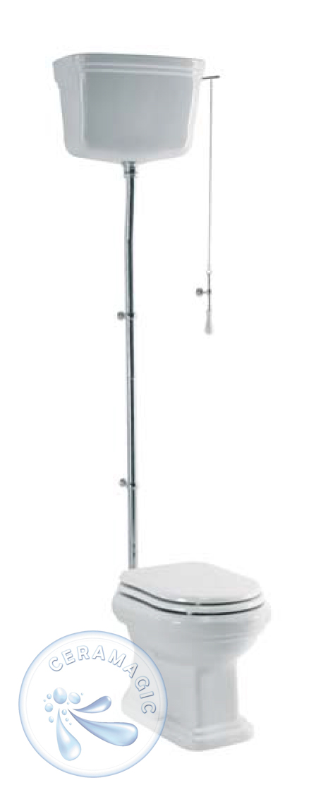 Напольный унитаз с высоким бачком в стиле ретро.