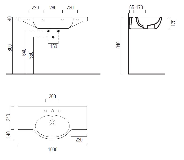 Размеры, (мм): длина - 1000, ширина - 480, высота - 175;