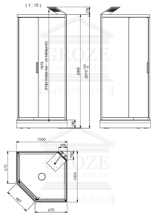 Размеры, (мм): ширина - 1000, глубина - 1000, высота - 2010;