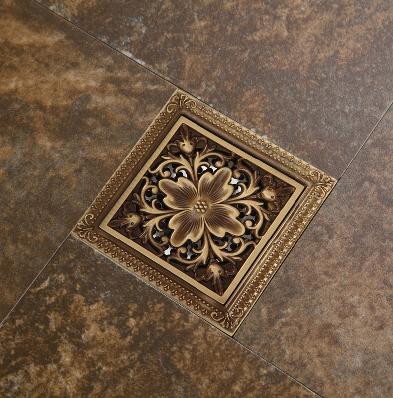 Квадратный трап для душа Migliore (Италия) из коллекции Oriente со съёмной декорированной решёткой.
