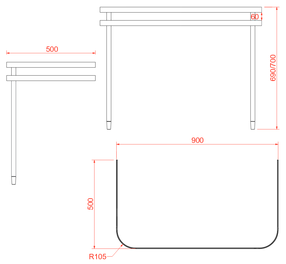 Размеры, (мм): длина - 900, ширина - 500, высота - 690-700;