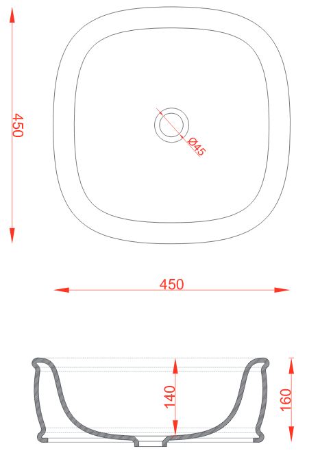 Размеры, (мм): длина - 450, ширина - 450, высота - 160, глубина - 140;