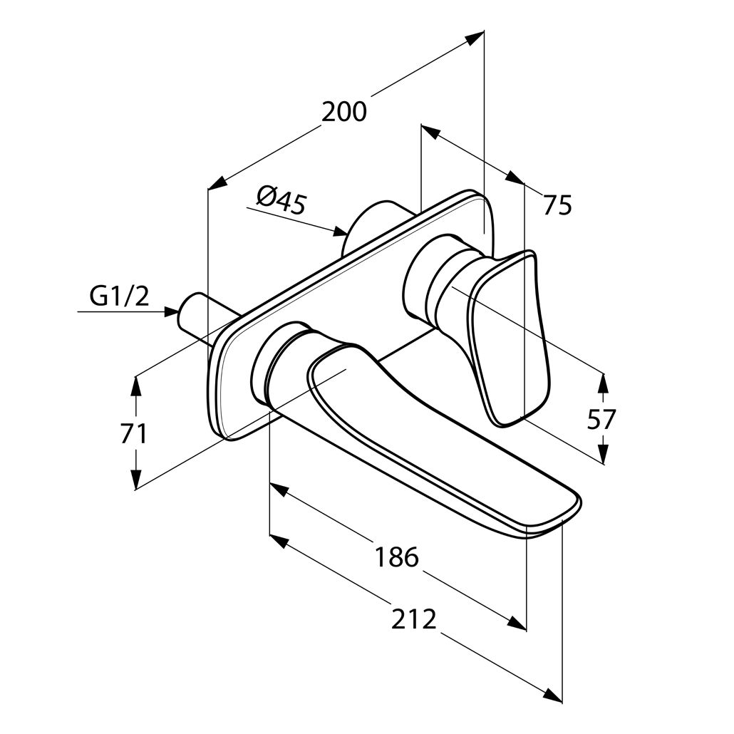 Размеры, (мм): длина излива - 186;