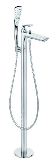Комплектация: напольный смеситель с держателем ручного душа, комплект для скрытого монтажа, шланг Suaraflex Silver длиной 1250 мм, 1-режимная душевая лейка Kludi Fizz 1S;