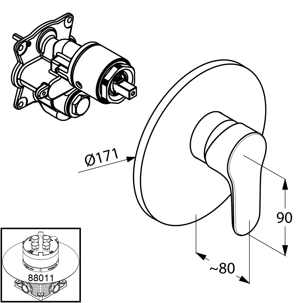 Комплектация: смеситель скрытого монтажа для душа (внешняя монтажная часть, встраиваемый блок);