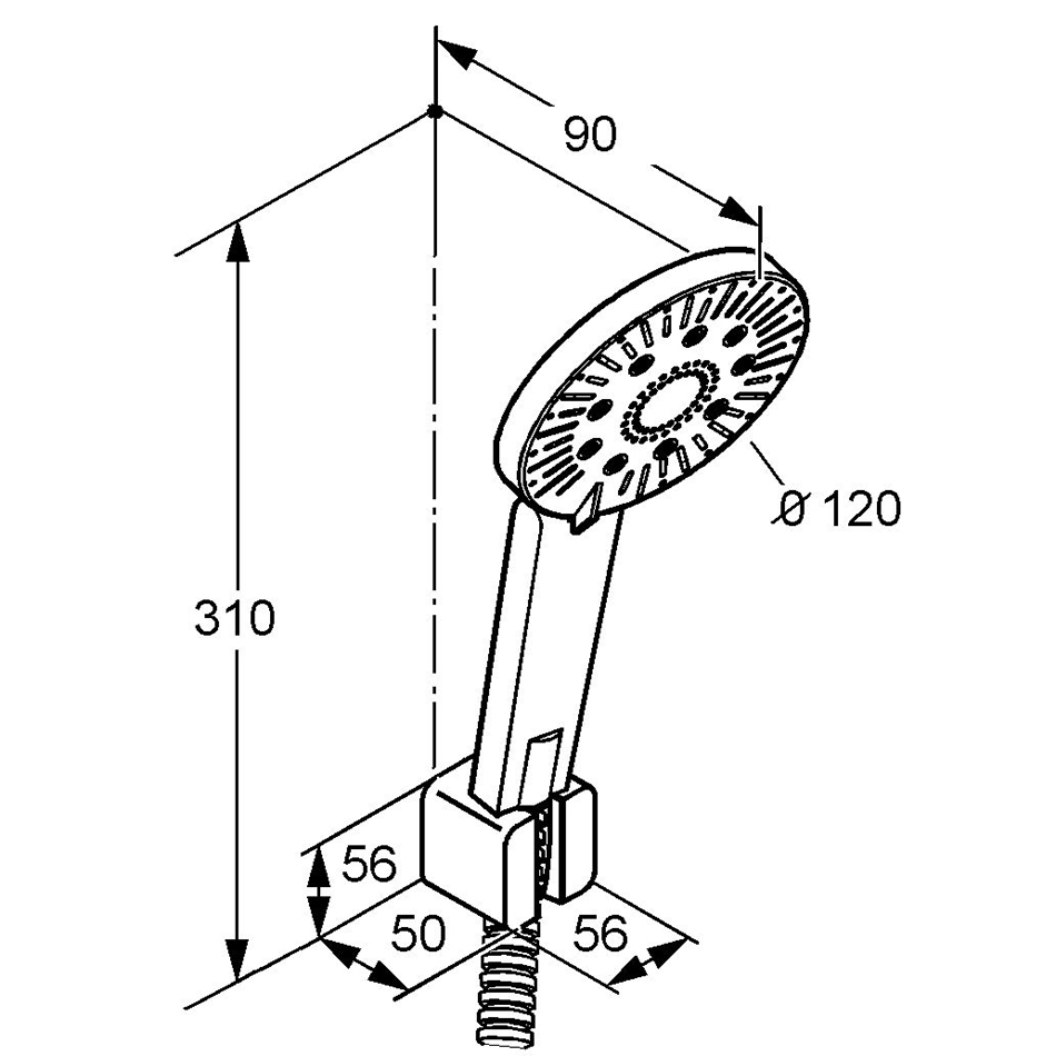 Комплектация: 3-режимная душевая лейка, настенный держатель ручного душа, гибкий шланг Sirenaflex длиной 1250 мм, соединение шланга 1/2 дюйма;