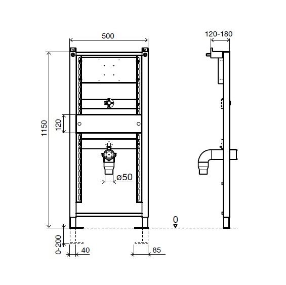 Комплектация: стальная рама с защитным покрытием, защитные заглушки, комплект соединительных патрубков для уринала (писсуара) диаметром 50 мм, фановый отвод диаметром 50 мм, крепёжный набор FastFit;
