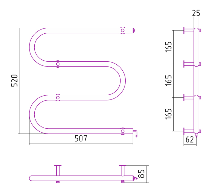 Комплектация: полотенцесушитель, кронштейны, набор крепежей, паспорт изделия;