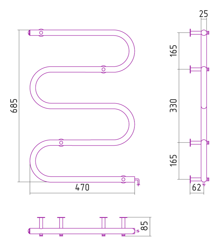 Комплектация: полотенцесушитель, кронштейны, набор крепежей, паспорт изделия;