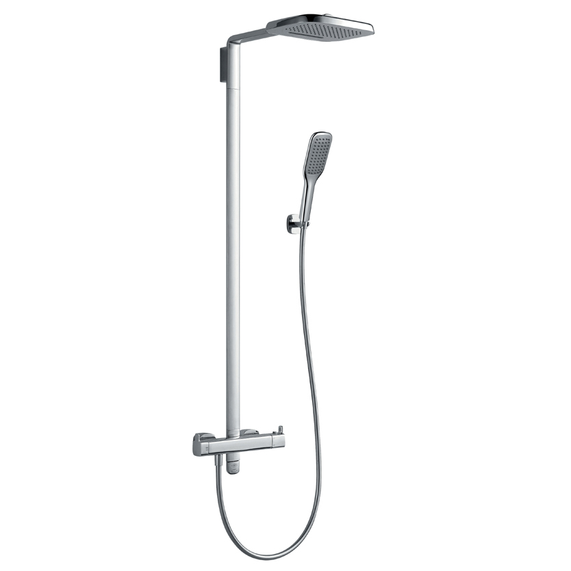 Комплектация: фиксированная неповоротная штанга высотой 1150 мм, верхний тропический душ с каскадным изливом, кронштейн верхнего душа с поворотным шарниром, смеситель для душа, 1-режимная душевая лейка, настенный держатель душевой лейки, гибкий шланг Isiflex (производство Германия) длиной 1500 мм, соединение шланга 1/2 дюйма;
