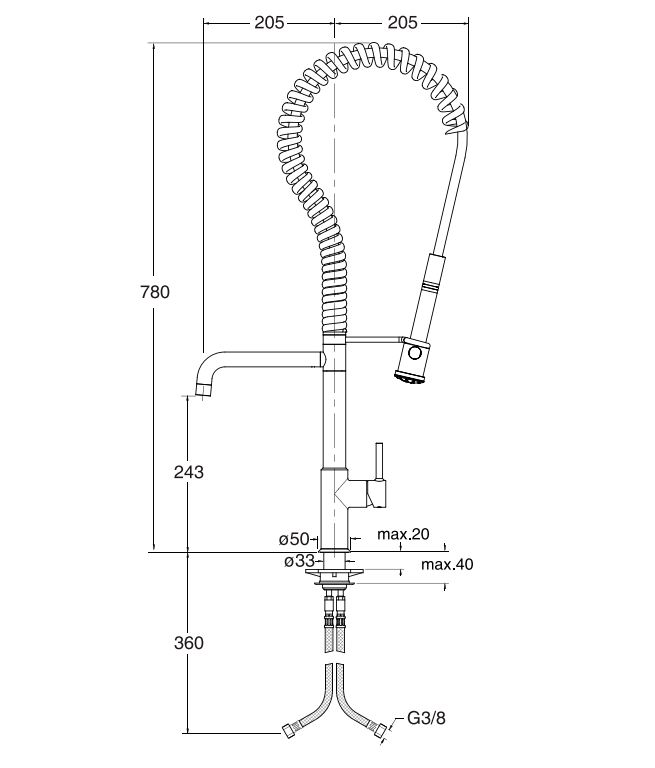 Рарзмеры, (мм): высота - 780, длина излива - 205;