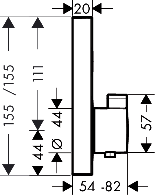 Комплектация: термостат с запорным вентилем, декоративная панель (для монтажа необходим встраиваемый блок Hansgrohe iBox Universal арт. 01800180);