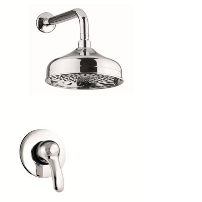 Комплектация: смеситель для душа (внешняя часть - декоративная панель), блок скрытого монтажа (внутренняя часть), верхний тропический душ диаметром 200 мм с поворотным шарниром, настенный кронштейн;