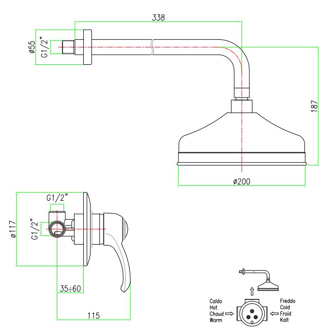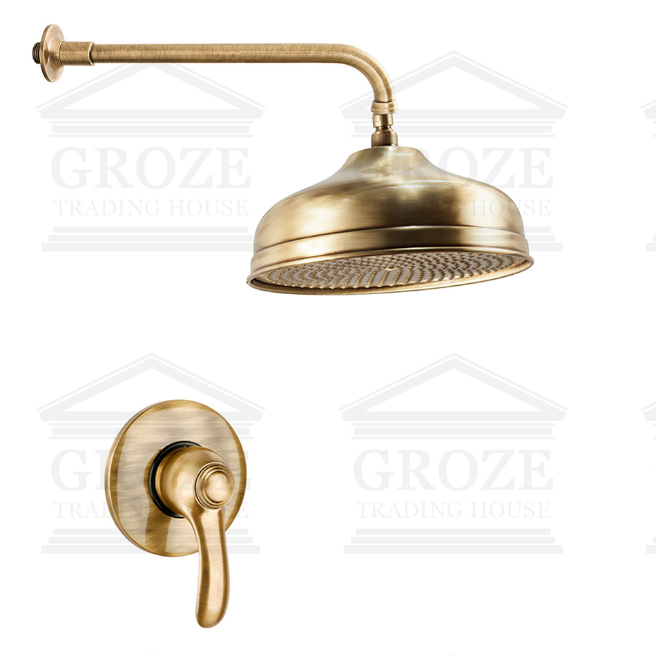 Комплектация: смеситель для душа (внешняя часть - декоративная панель), блок скрытого монтажа (внутренняя часть), верхний тропический душ диаметром 200 мм с поворотным шарниром, настенный кронштейн;