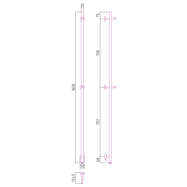 Внешние габариты, (мм) - высота - 1650, ширина - 50, глубина - 122.5;