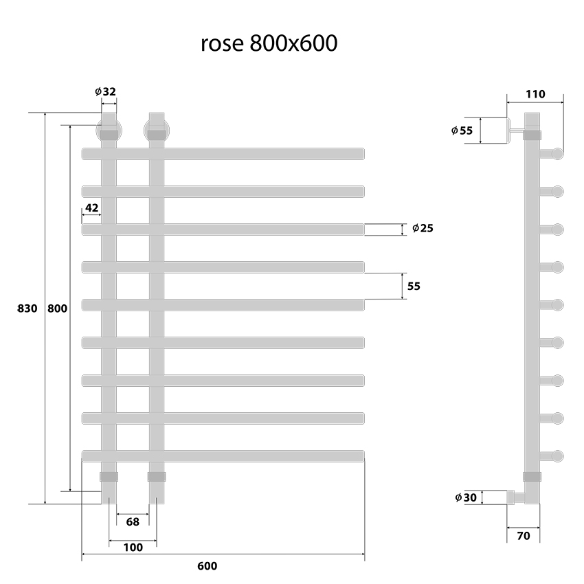 Водяной полотенцесушитель Energy серии Rose Lux;