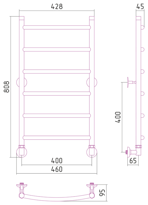 Тип: полотенцесушитель лесенка с горизонтальными перемычками;