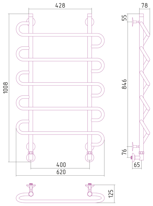 Тип: полотенцесушитель лесенка с перемычками в виде змеевика;