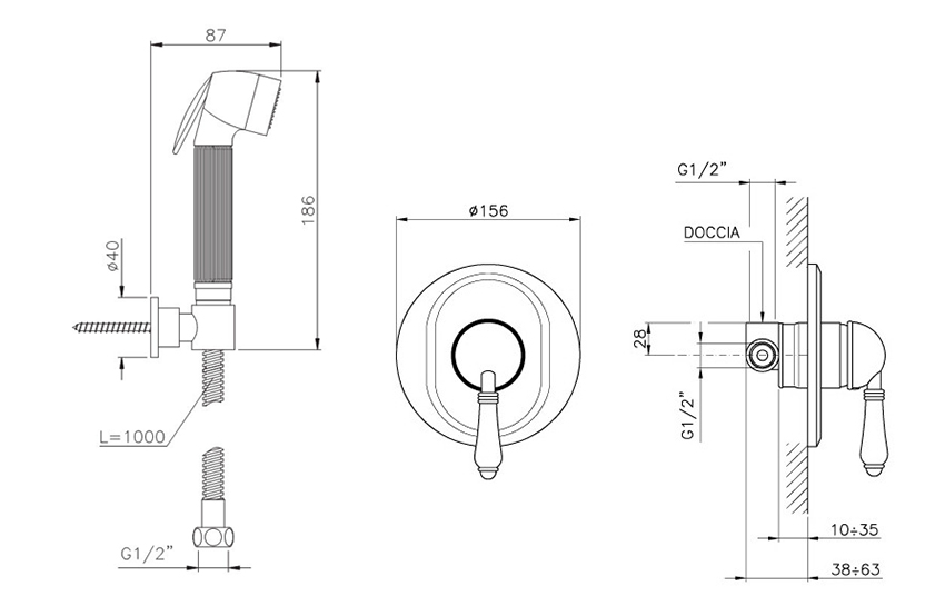 Комплектация: смеситель скрытого монтажа (внутренний механизм, внешняя панель), гигиенический душ, шланг длиной 1000 мм, настенный держатель, выпуск;