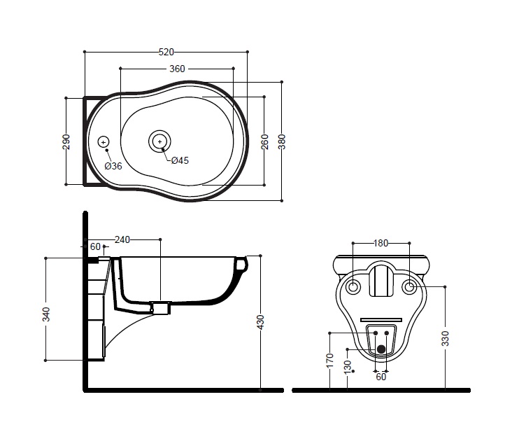 Опция: есть отверстие для перелива, 1 отверстие под смеситель;
