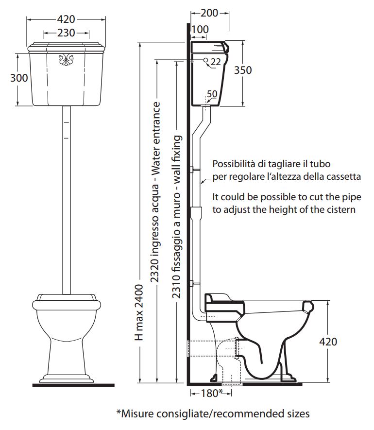 Напольный унитаз с бачком на высокой трубе в стиле ретро Migliore (Италия) из коллекции Impero;
