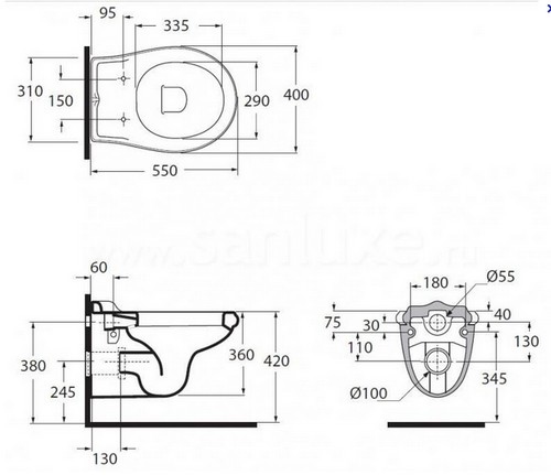 Дополнительно рекомендуем приобрести крышку-сиденье Soft Close, клавишу смыва, инсталляцию (монтажную раму) скрытого монтажа см. раздел Инсталляции