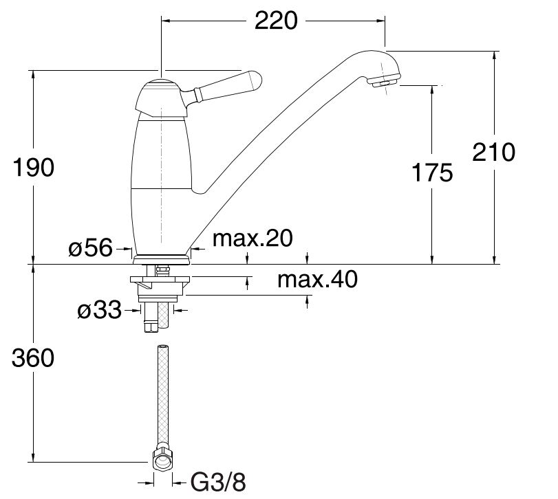 Рарзмеры, (мм): высота - 210, длина излива - 220;
