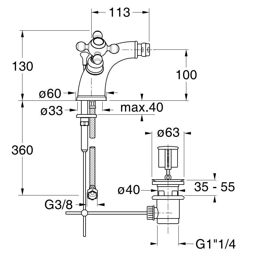Комплектация: смеситель, гибкая подводка, донный клапан;