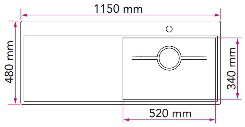 Размеры, (мм): длина - 1150, ширина - 480, глубина чаши - 180;