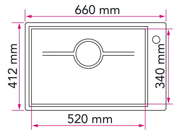 Размеры, (мм): длина - 660, ширина - 412, глубина чаши - 180;