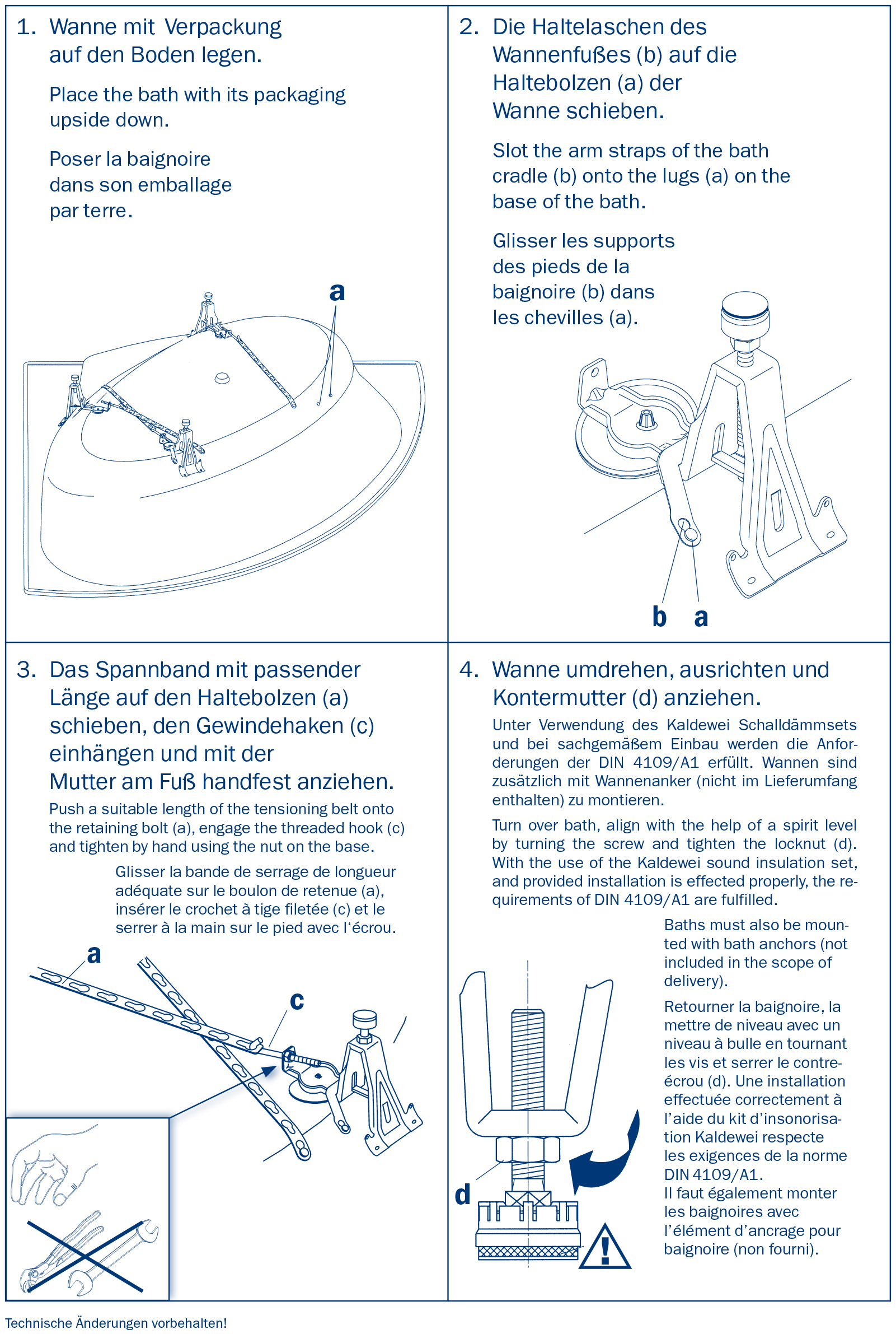 Комплект подходит для установки ванн Kaldewei: Cayono/Cayono Star модель 751, 757, Vaio Duo 3, Vaio 6/Vaio 6 Star, Puro Duo, Puro, Twin Pool, Studio/Studio Star, Punta Duo 3, Plaza Duo, Ellipso Duo Oval, Ellipso Duo, Conoduo, Asymmetric Duo.