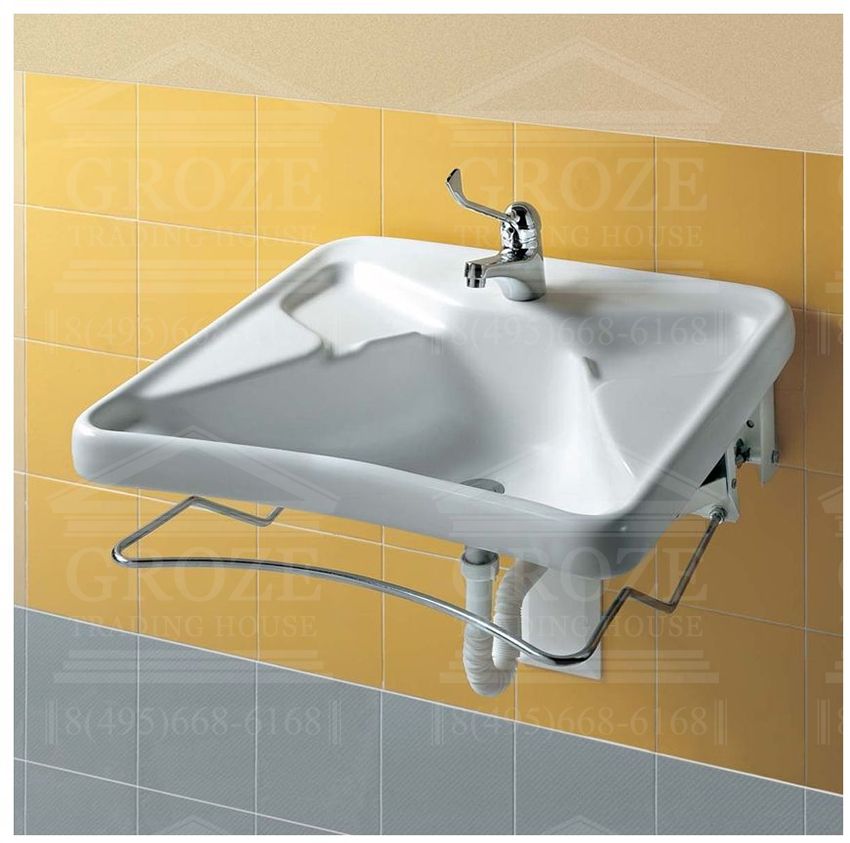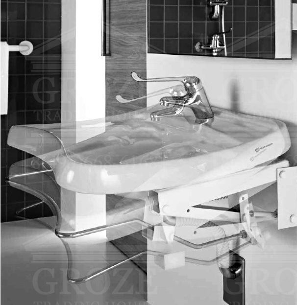 Металлический монтажный стенд с пневматическим механизмом позволяет надёжно зафиксировать раковину на стене, при этом оставляя возможность изменять угол наклона раковины в процессе её использования. Это удобно для людей, которые вынуждены перемещаться на инвалидной коляске;