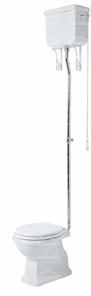 Установка: напольная, с бачком на высокой трубе, требуется наружный механизм слива для высокого бачка с трубой и цепочкой;