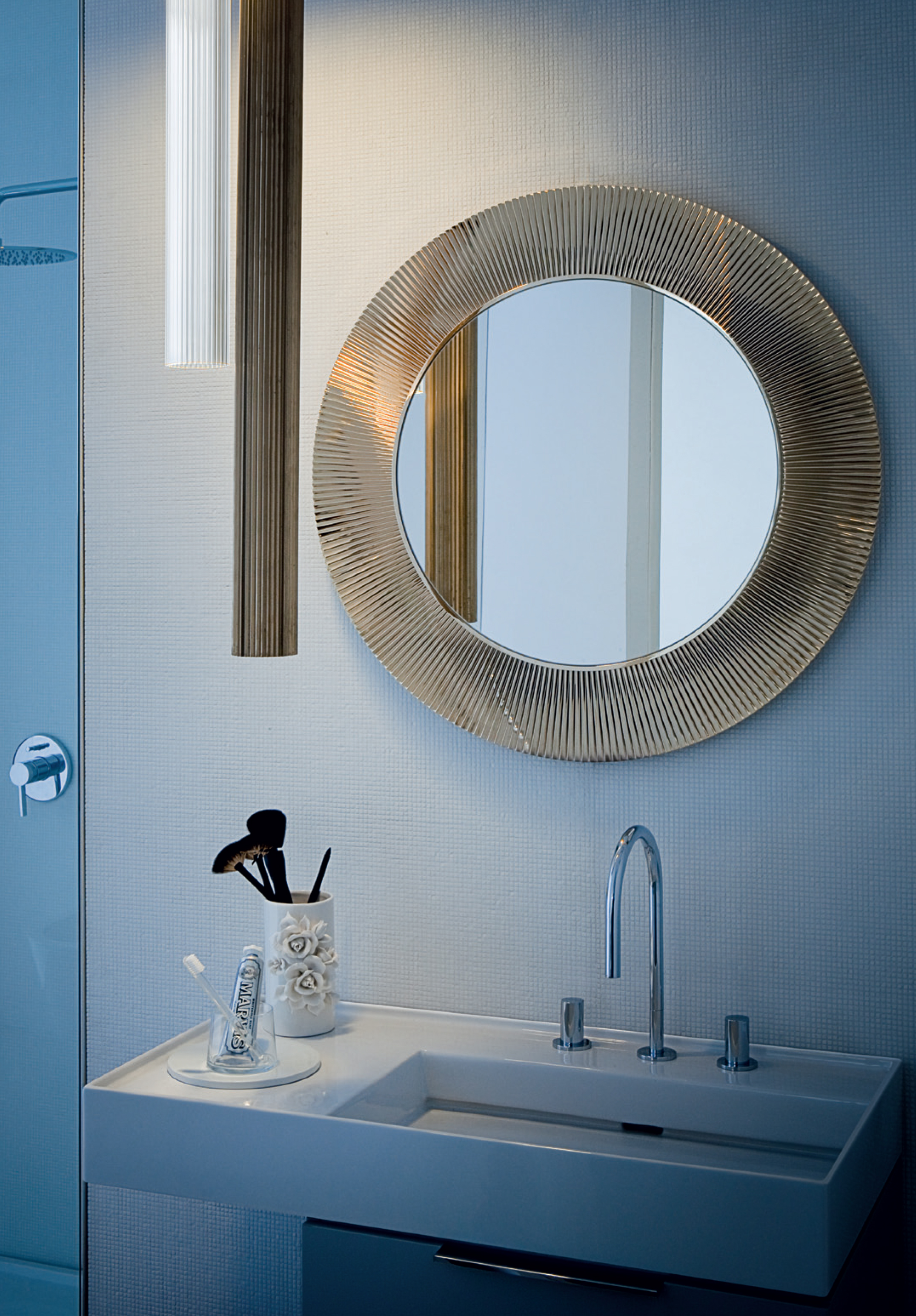 Подвесная раковина Laufen из коллекции Kartell с полочкой слева, со специальным скрытым сливом;