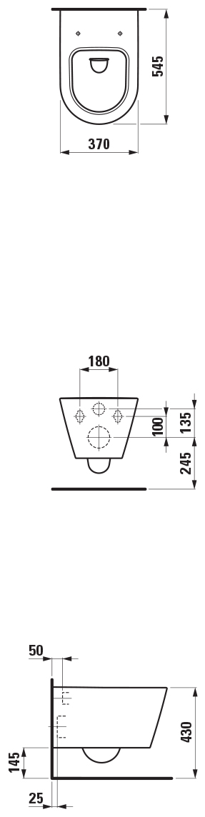 Дополнительно рекомендуем приобрести крышку-сиденье Standart или Soft Close, клавишу смыва, инсталляцию (монтажную раму) скрытого монтажа см. раздел Инсталляции;