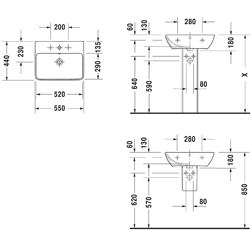 Варианты монтажа: подвесной/с пьедесталом Duravit ME By Starck арт. 085839/с полупьедесталом Duravit ME By Starck арт. 085840;