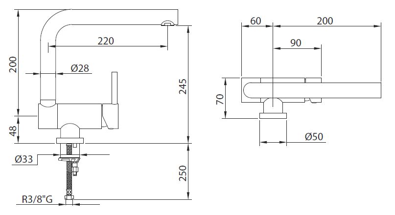 Комплектация: смеситель, металлический выдвижной 2-режимный душ, гибкая подводка;