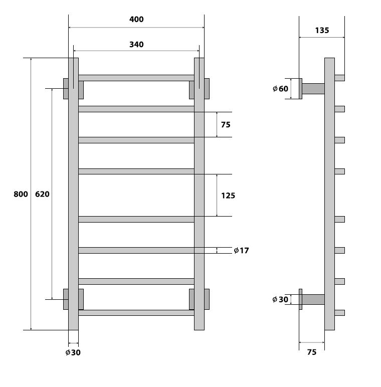 Комплектация: полотенцесушитель на кронштейнах, электрический шнур с вилкой, комплект подключения;