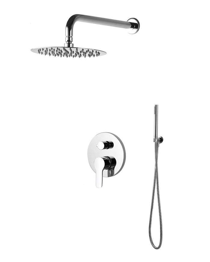 Материалы: нержавеющая сталь (верхний душ), сантехническая бронза (смеситель, выпуск, ручной душ);