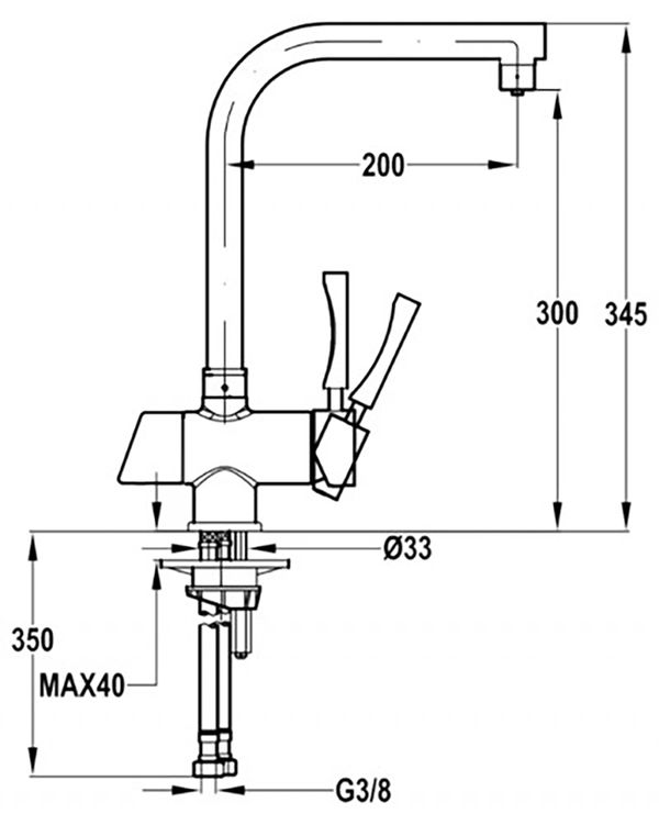 Длина излива - 200 мм;