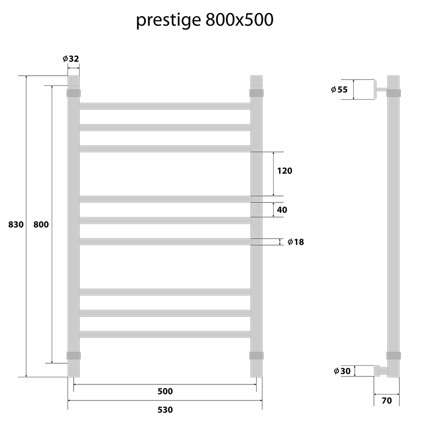Водяные полотенцесушители Energy Prestige – внешне напоминают модель Classic, так как относятся к тому же типу лесенок. Перекладины полотенцесушителя серии Prestige тонкие и выпуклые, расположены группами, через промежутки увеличенного размера. Дизайн строгий, элегантный, удачно впишется в интерьер ванной комнаты и придаст ему неповторимость стиля.