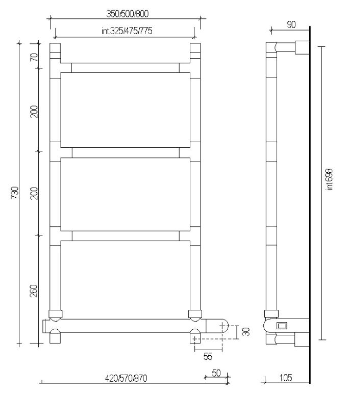 Подключение: скрытое подключение Box (кнопка на корпусе полотенцесушителя);