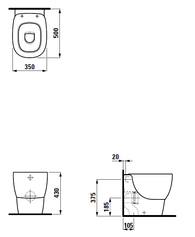 Дополнительно рекомендуем приобрести: крышку-сиденье Soft Close, клавишу смыва, бачок скрытого монтажа см. раздел Инсталляции;
